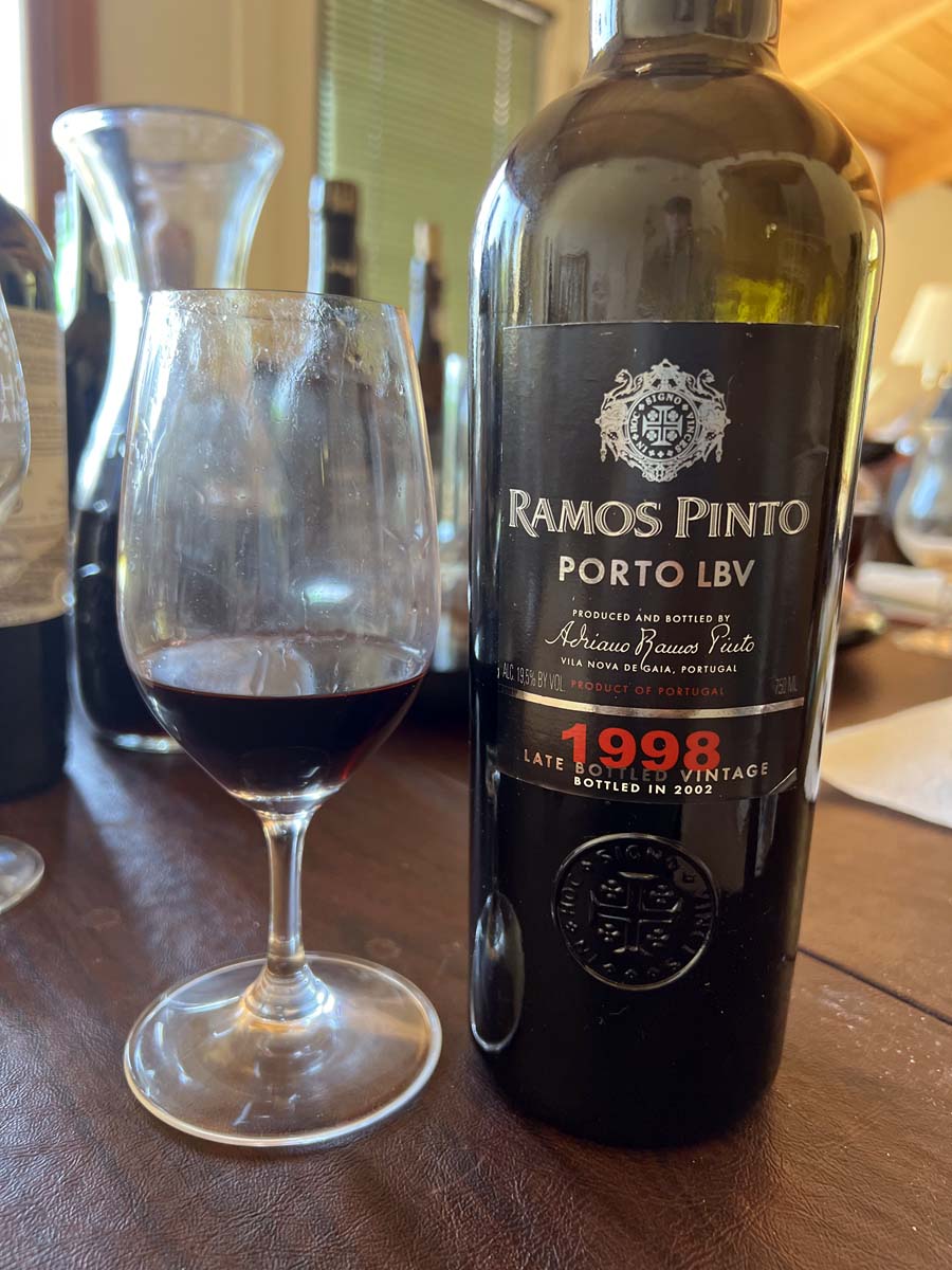 1998 Ramos Pinto Late Bottled Vintage Port – Dark purple in color. Chocolate, red fruit, rose petals, and a touch of mint on the nose. Very nice, structured notes of rich boysenberry and sour cherry. Great acidity and a nice long finish. 92 points. 7/16/2022