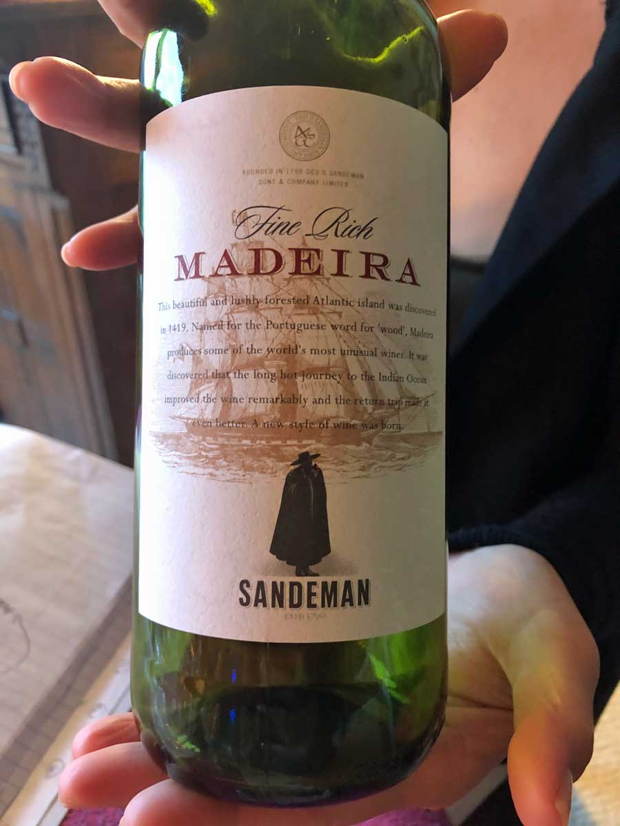 Sandeman Fine Rich Madeira – Amber orange in color. Clear. Mahogany and wood notes on the nose with a bit of oxidation. Incredibly unctuous with some chocolate notes. Some oxidized notes on the finish with date on the very long finish. Baby aspirin? 91 points (8/17/2019)